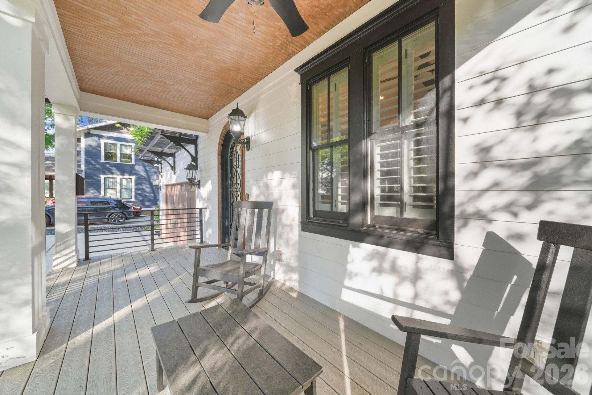 Southern charm, low maintenance, a heated pool, and a fully self-contained apartment ? this 4-bedroom, 3.5-bath home in Belmont, Charlotte NC makes a statement from the moment you arrive and keeps delivering. With 2,618 square feet of custom design, a dedicated office, and a 2-car garage, it's walkable to Midwood dining and the Lynx light rail.The main level opens through a striking wrought iron front door onto beautiful oak hardwood floors. The kitchen delivers: premium GE Monogram appliances, gas range, custom brick backsplash, dry bar with beverage fridge, and a quartz island that seats 8?10. The living room with gas fireplace opens directly to the pool area. Main-level primary suite walks out to the pool with a king bed and custom headboard, built-in closet, dedicated makeup vanity, and a spa-caliber bath with custom mirrors and tile. Office, laundry, and powder room complete the ground floor.Outside: 12??25 heated pool finished in 2023, large pool deck, gas grill hookup, firepit hookup, and Ultra Aluminum privacy fencing needs no maintenance. Front irrigation and triple-wide driveway. Upstairs, 2 bedrooms share a full bath, each with oversized walk-in storage and city views. The 700 sq ft attached apartment has its own private entrance, full kitchen, bedroom, full bath, living area, and washer/dryer ? ideal as a rental, in-law suite, multigenerational living space, or second primary suite. An interior door connects it to the main house and can be locked or open. Solid throughout: 3-zone HVAC with a dedicated apartment zone, tankless water heater, full CPI security system, wrought iron interior staircase, and extra-deep 2-car garage with sink. Washer/dryer new in 2024. Exterior fully painted in 2021. Move-in ready.