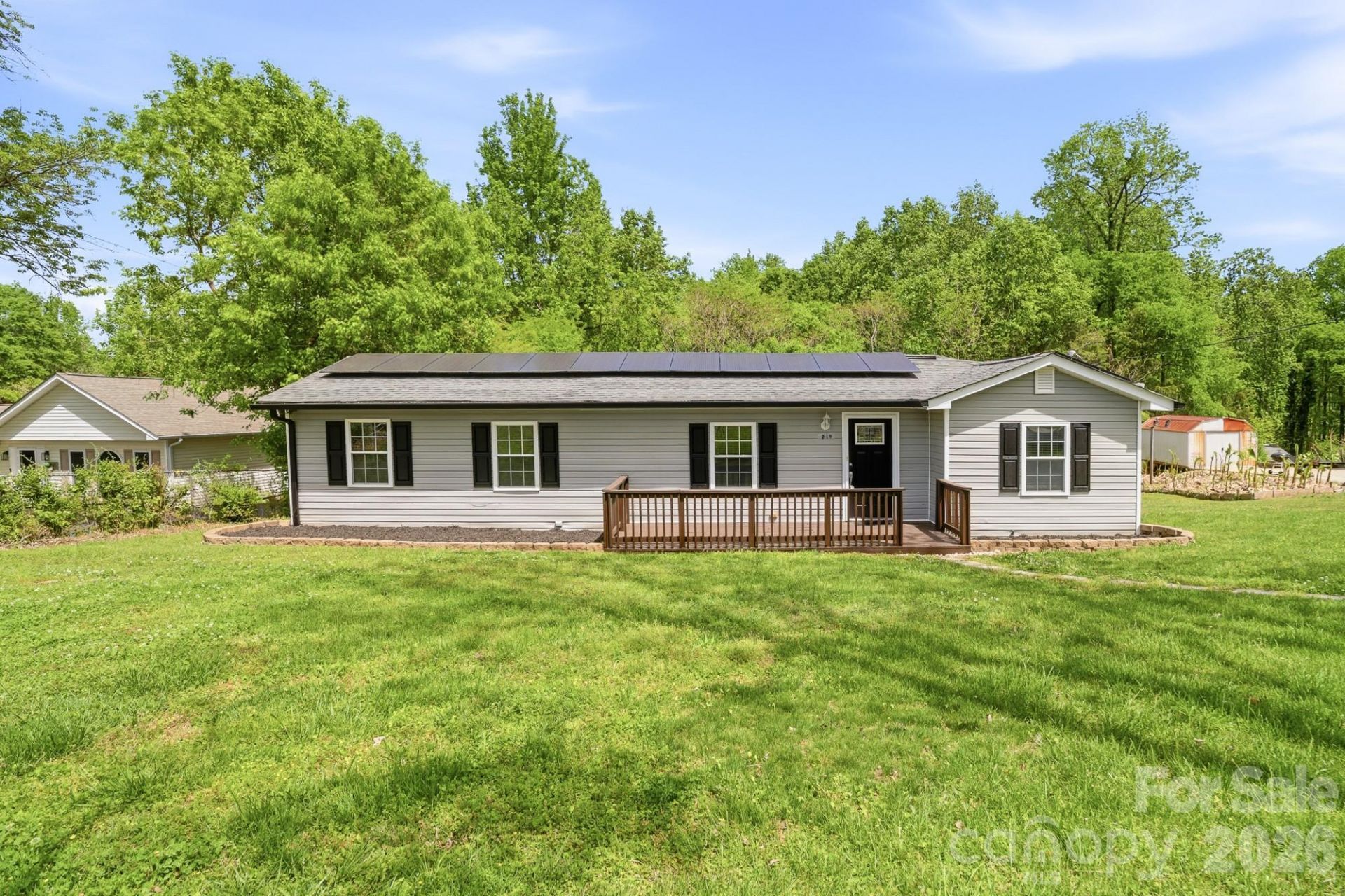 Eco-Friendly Living on Nearly an Acre-No HOA Welcome to 219 Breezewood Drive, a thoughtfully updated ranch in Charlotte offering sustainable features, usable land, and everyday convenience. Designed for buyers who value efficiency and simplicity, this home includes solar panels, an EV charger and gas service already capped?supporting a cleaner, all-electric lifestyle.Situated on approximately 0.91 acres with no HOA, this property provides flexibility rarely found in this price point. Whether you envision gardening, outdoor entertaining, or simply enjoying privacy, the level lot and mature surroundings create a peaceful setting without sacrificing proximity to the city. Inside, the home features updated LVP flooring and a functional, open layout ideal for first-time buyers or those looking to downsize without compromise. The kitchen is upgraded with granite countertops and flows seamlessly into the main living area, offering a practical and connected space for daily living.Outdoor living is equally appealing with both a welcoming front porch and a screened-in back deck-perfect for enjoying Carolina evenings year-round without the nuisance of insects.Located in the Mallard Creek area, this home offers convenient access to UNCC, I-485, shopping, dining, and everyday essentials-making commuting and daily errands simple. If you've been searching for a home that balances environmental consciousness, affordability, and land ownership in Charlotte, this is a rare opportunit.Schedule your private tour today and explore a smarter, more sustainable way to live. Property includes two parcels 029-141-18 & 029-141-30.
