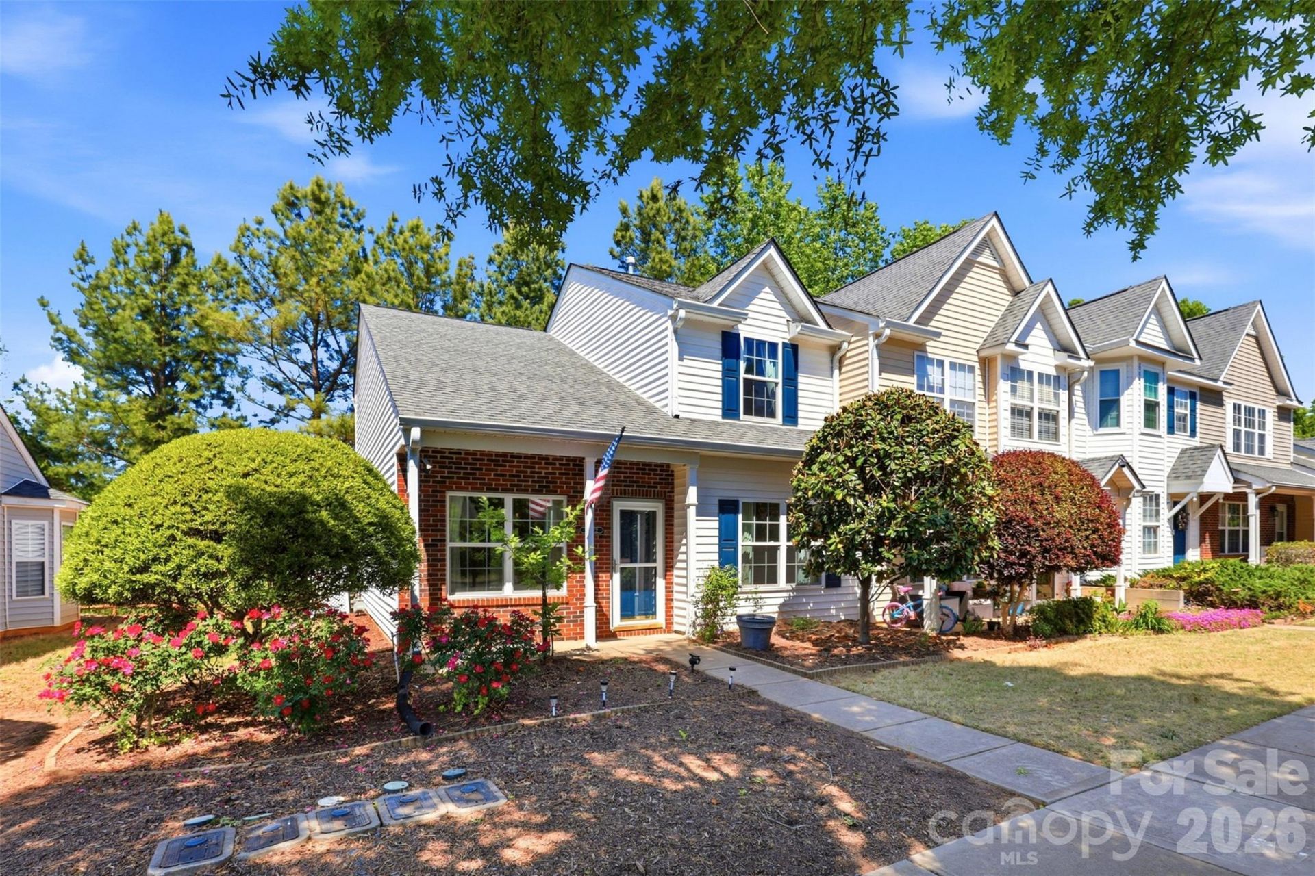 Welcome to this beautifully UPDATED END-UNIT townhome in the affordable Hanover neighborhood of Indian Land?where comfort, convenience, and smart upgrades come together. This 2-bedroom, 2.5 bath, plus large loft/flex/possible 3rd bedroom home offers the ease of main-level living with a spacious primary suite on the first floor, featuring a walk-in shower/tub combo designed for both relaxation and accessibility. The open layout flows effortlessly, with updated flooring, vaulted ceilings and natural light pouring in thanks to all new Pella windows and doors?a rare and valuable upgrade. The kitchen has granite countertops and stainless steel appliances, pantry, and spacious dining area. A convenient half bath rounds out the first floor. Upstairs, you'll find a spacious loft/flex area ideal for a home office, media room, or play space?with the option to easily enclose for a third bedroom if desired. A generously sized secondary bedroom and full hall bath provide comfortable separation and flexibility for guests or family.Major systems have already been handled for you, including a newer HVAC and water heater, giving peace of mind where it matters most. Step outside to your private back patio?perfect for quiet mornings or unwinding at the end of the day. Attached shed room provides additional storage. As an end unit, you'll enjoy added privacy and extra light, setting this home apart from the rest. Assigned parking is included, with ample additional unassigned spaces conveniently located nearby. Enjoy low-maintenance living with community amenities that include lawn maintenance, an outdoor pool, playground, picnic area, and sidewalks throughout. Ideally located close to shopping, dining, and top-rated Indian Land schools, this home checks every box. NO RENTAL CAP! Low-maintenance living in a prime location?this is exactly the kind of home buyers wait for.